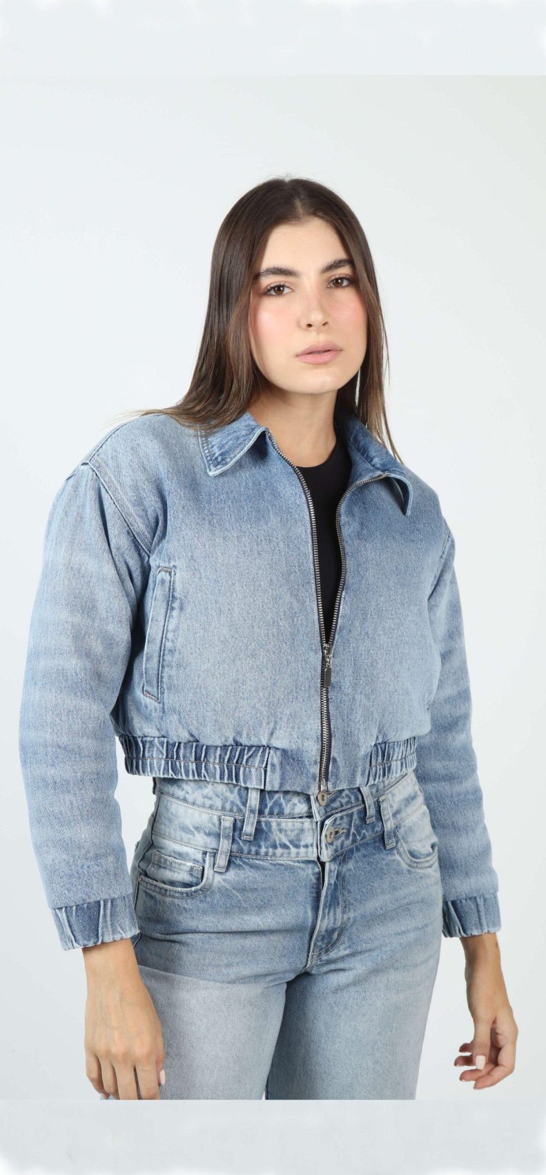 Chaqueta Femenino Bomber Crop Acolchada Azul Full Moda. Su fit bomber crop es una horma relajada y cómoda para llevar en cualquier plan casual. Su técnica avanzada consiste en el lavado con manualidades y desgastes focalizados sobre un índigo acolchado e interior satín en contraste para dar más volúmen al estilo bomber crop de última tendencia con el comfort de una prenda que regula mejor el clima frío