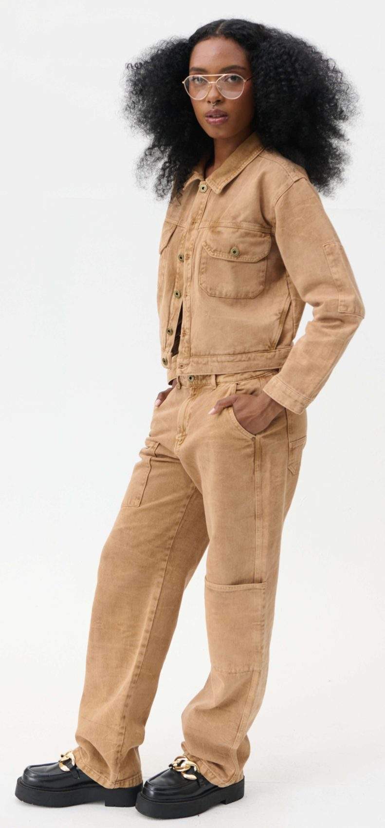 Detalles y Acabados: Jean Straight con tono ocre vintage de última tendencia. Suavizado para un mejor tacto