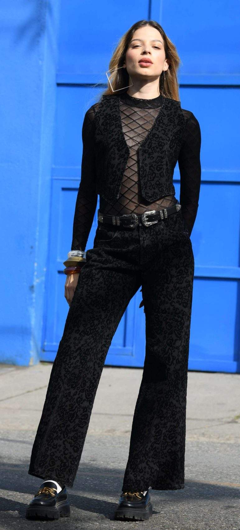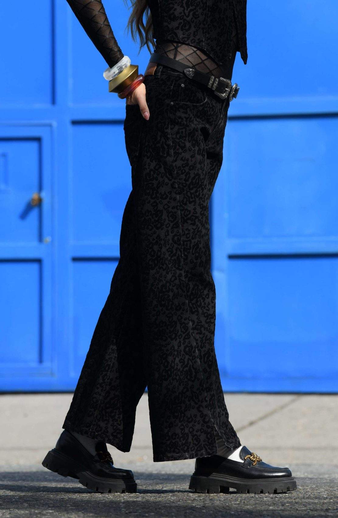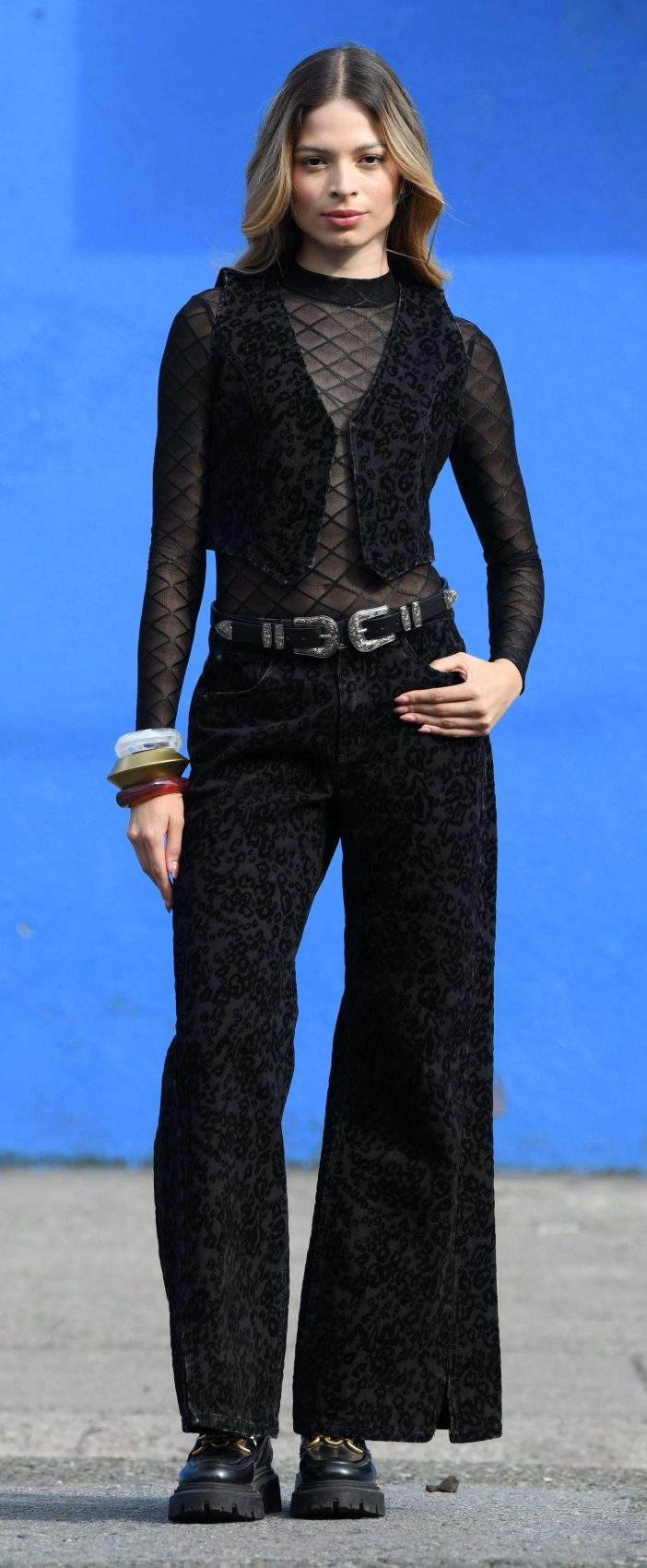 Detalles y Acabados: Wide leg fit con base textil especial de velvetin negro animal-print sobre índigo. Suavizado para un mejor tacto